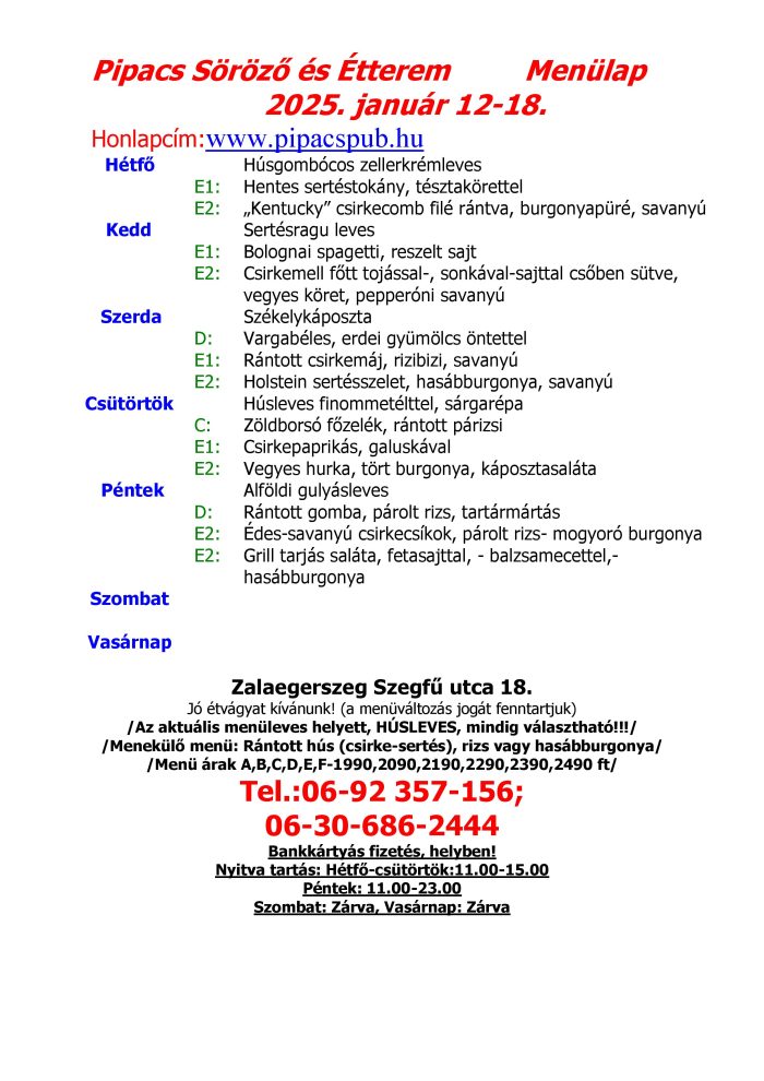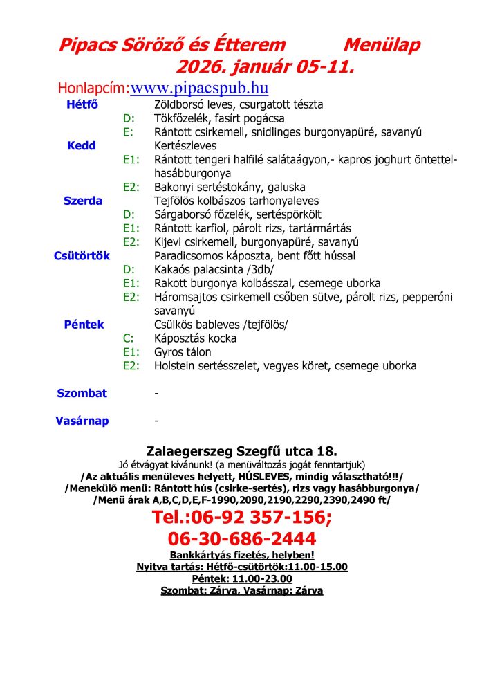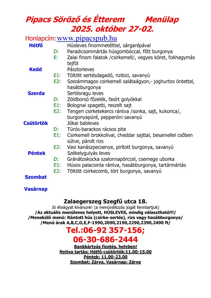 Zalaegerszeg éttermeinek heti menüválasztéka egy helyen